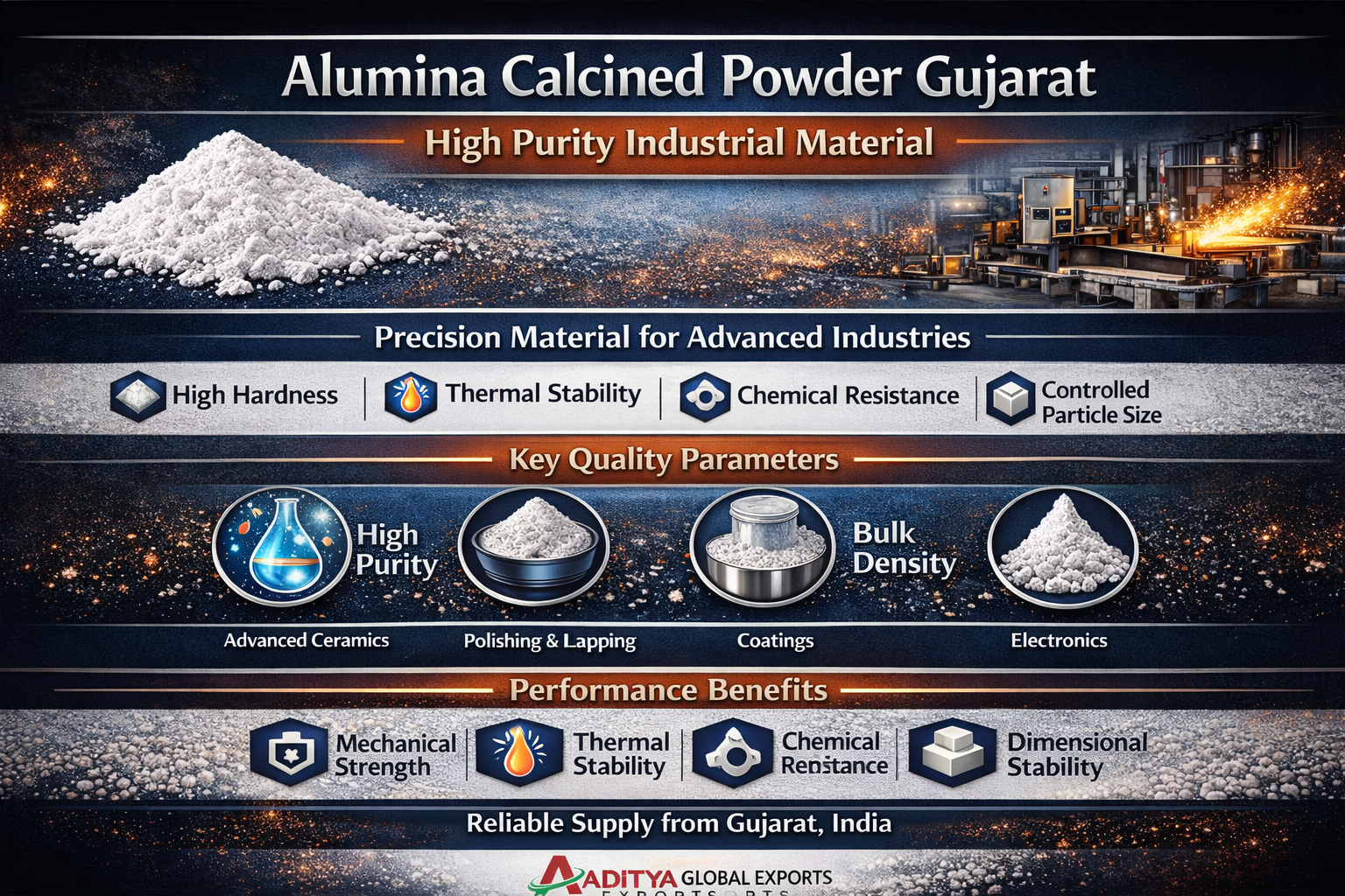 Aditya Global Exports focuses on delivering industrial-grade calcined alumina powder with consistent quality and global supply capabilities.